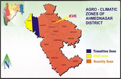 Ahmednagar district is mainly recognized as multidimensional situation. District is divided into three agro climatic zones viz. Scarcity Zone, Plain (Transition) zone and Ghat (Hilly) zone.